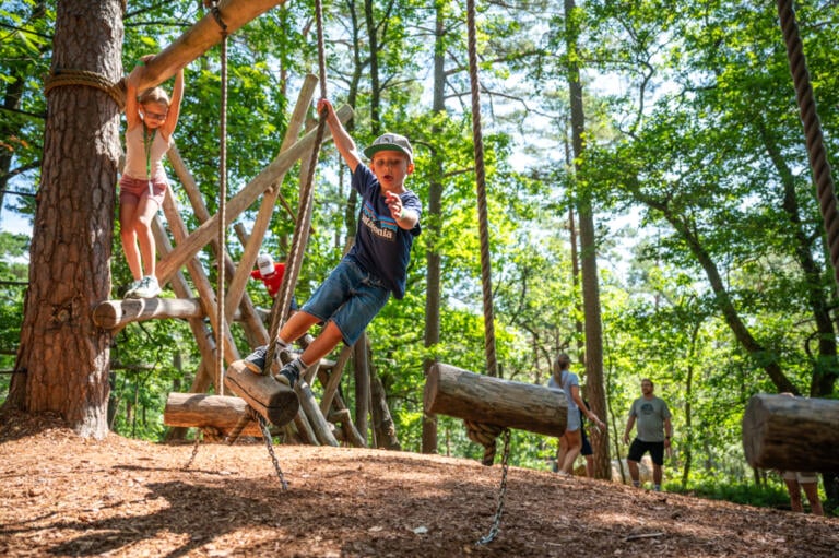 Bo tett på naturen i kule, små trehytter med klatreløyper på alle kanter. Barna kommer til å elske det!