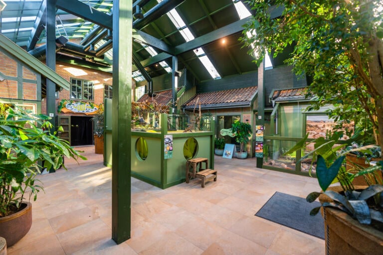 Bli med inn i Terrariet og lær mer om dyrene som bor her. En dyrepasser viser frem et av dyrene i Terrariet. Her bor det blant annet mange fine slanger, øgler, skilpadder og insekter.