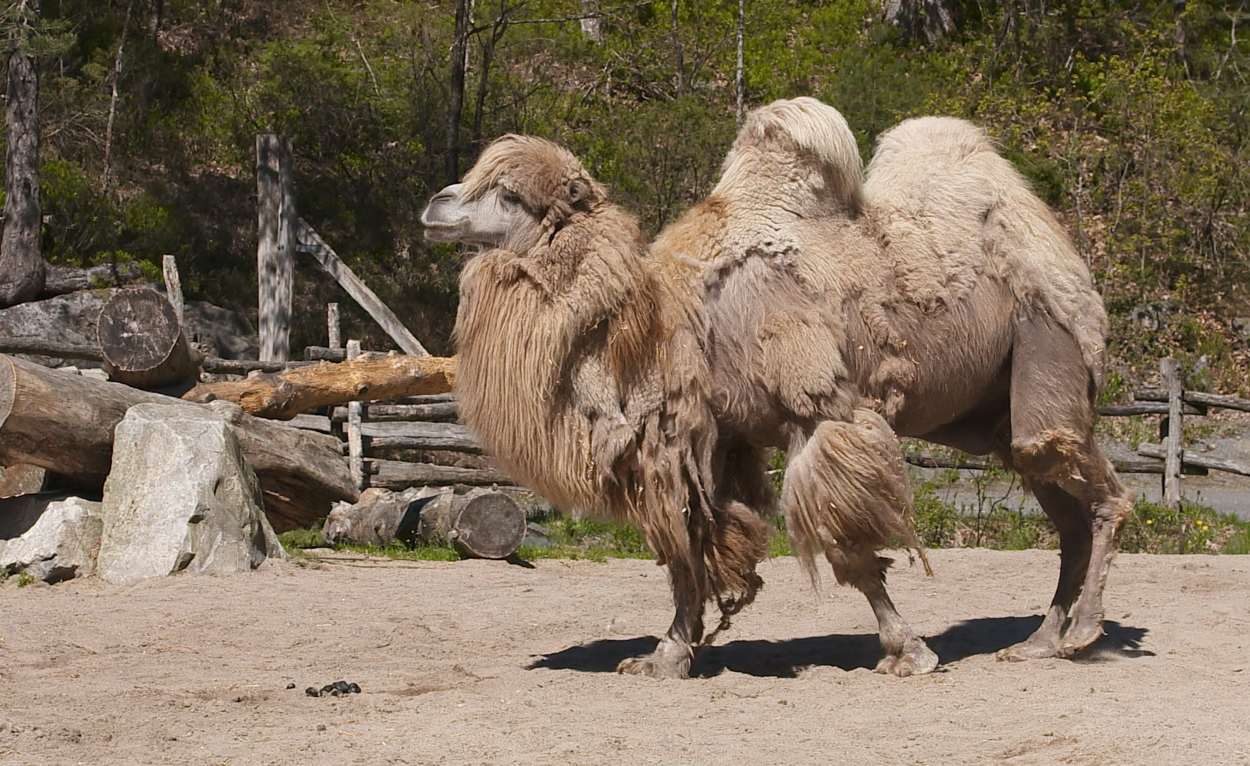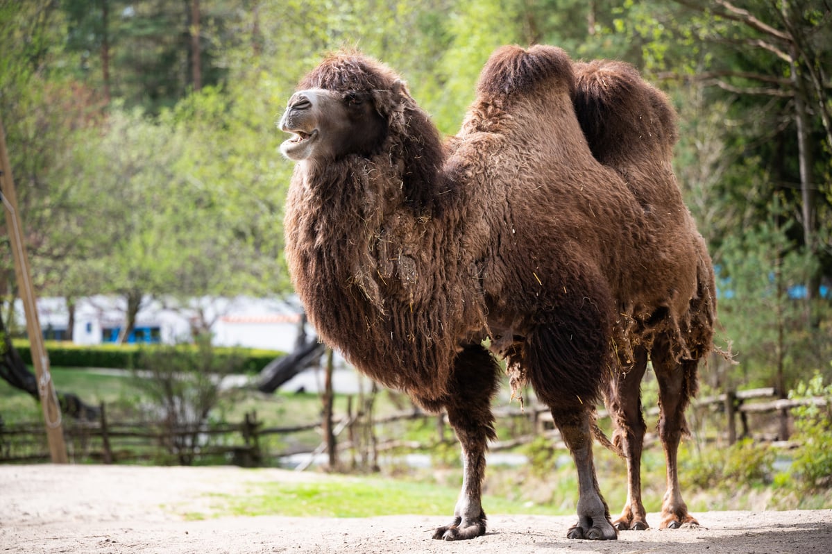 Kamelen kan tåle temperaturer fra -29 °C til 38 °C. Kamelen mister vinterpelsen så hurtig at den kommer av i store flak, det gir kamelen et raggete utseende.