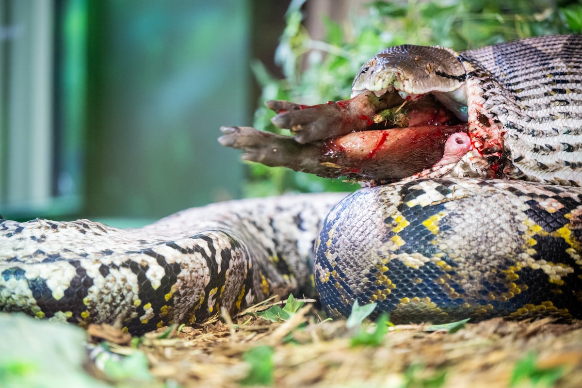 Når store byttedyr spises, må nettpyton omrokkere store deler av invollene for at maten skal kunne bevege seg gjennom fordøyelsessystemet.