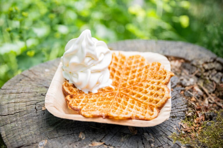 Vaffel med softis eller syltetøy