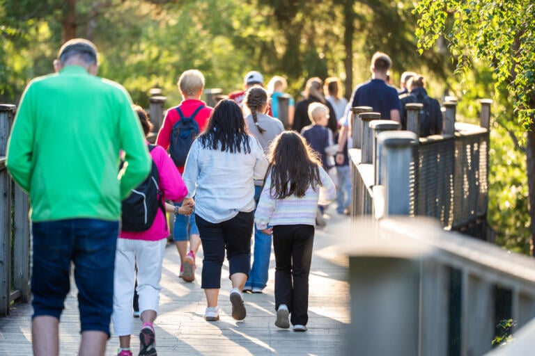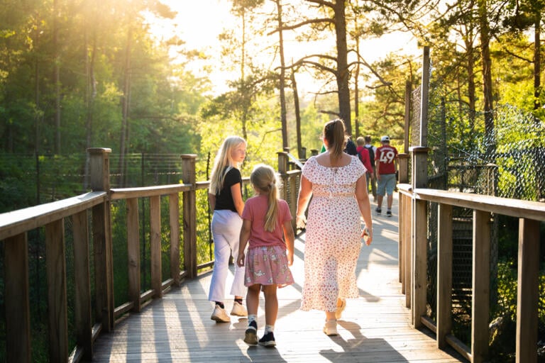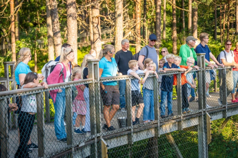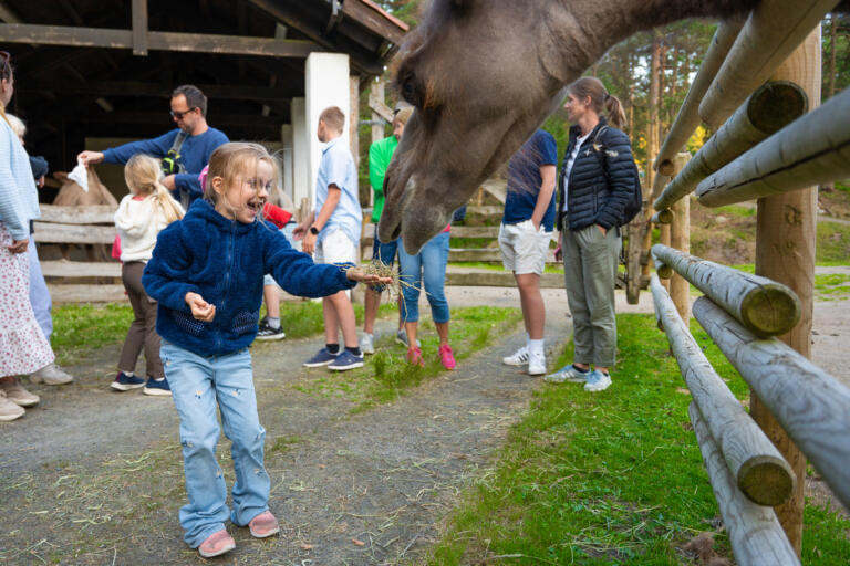 Så snart store og små er mette i magen, starter kveldens høydepunkt – safari! Sammen legger dere ut på en magisk vandring langs broene i skogen for å møte dyrene. Kanskje ser du gaupa smyge mellom trærne, hører ulven ule i det fjerne, eller får et glimt av elg, jerv, oter – og til og med kamel.