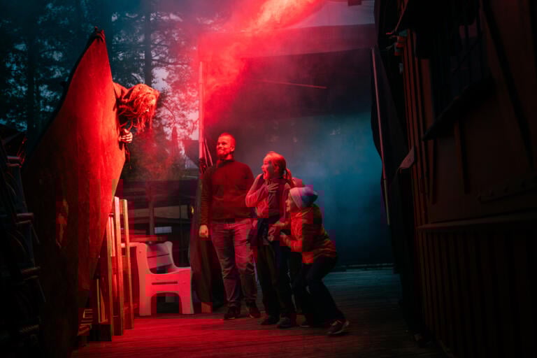 Hvis du vil bli fullstendig vettskremt besøker du oss på kveldstid i mørket, hvor Villmarkens forbannelse finner sted. Anbefalt aldersgrense på Villmarkens forbannelse er fra 10 år og oppover.